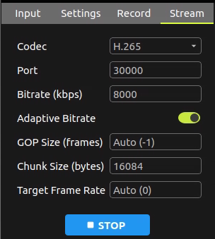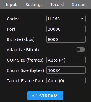 - Adaptive Bitrate: Enable or disable adaptive bitrate streaming. When enabled, the application will automatically adjust the bitrate based on network conditions to ensure smooth streaming.