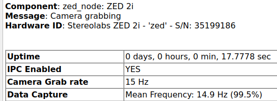 | ZED 2i ZED Mini | HD2K | 15 FPS | ~200/267 msec |